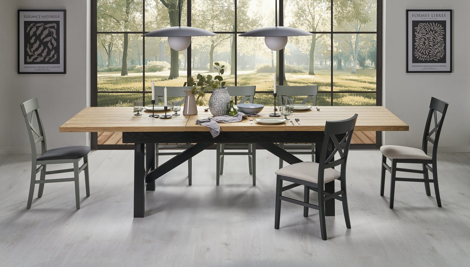 Jeśli marzysz o domu w stylu „Modern Farmhouse”, pełnym naturalnego uroku, przestronności i funkcjonalności, skorzystaj z naszej oferty. Duży stół, eleganckie krzesła oraz dodatek w formie przytulnego fotela mogą stać się częścią Twojego wymarzonego wnętrza. Odpowiednie meble, w połączeniu z dużymi oknami, przestronnością i naturalnymi materiałami, stworzą atmosferę, która połączy wiejski urok z nowoczesnym stylem.