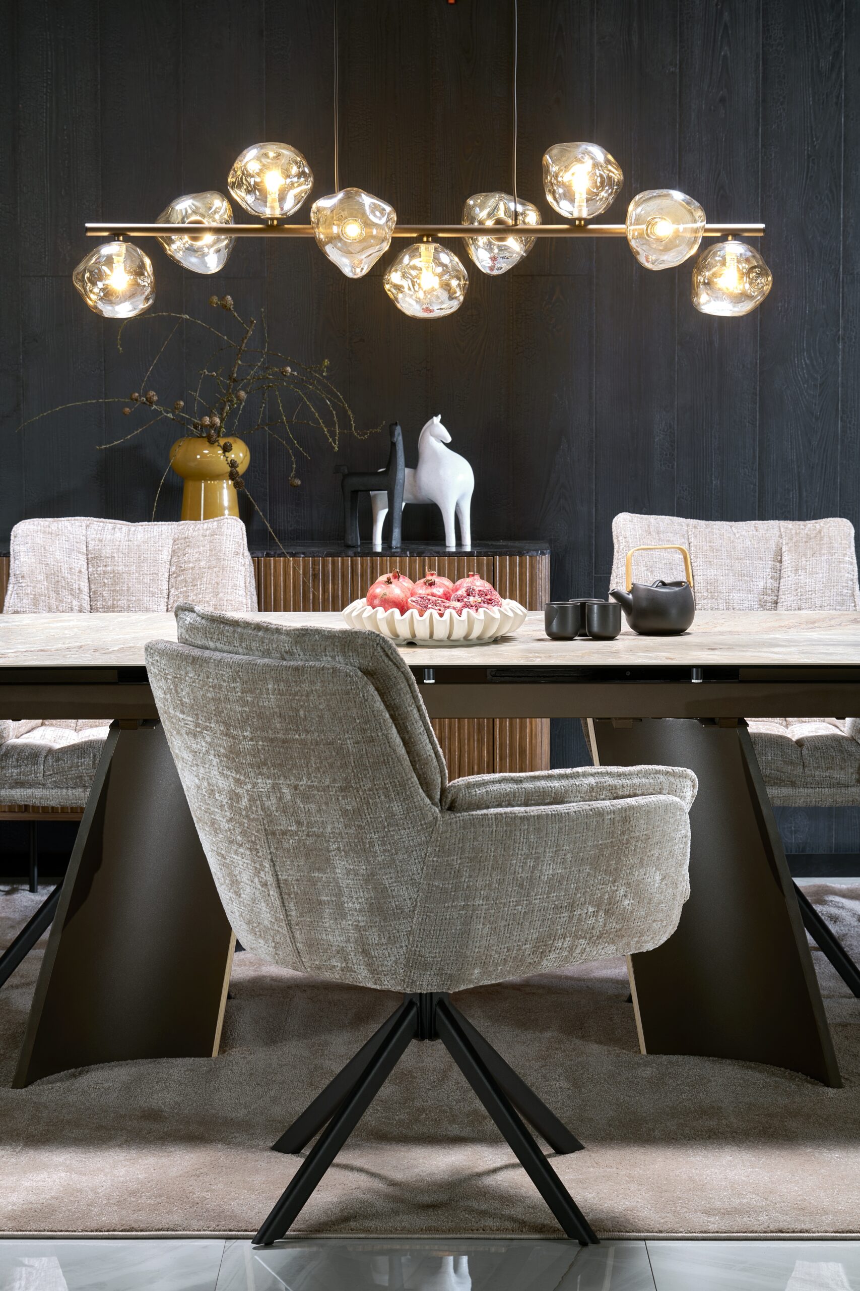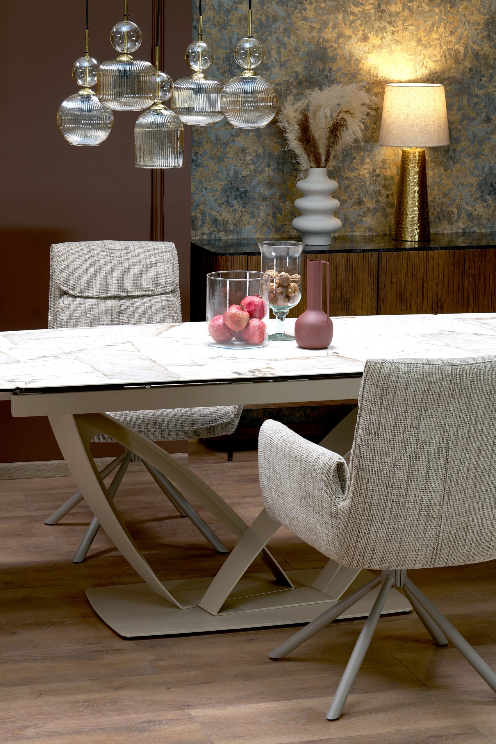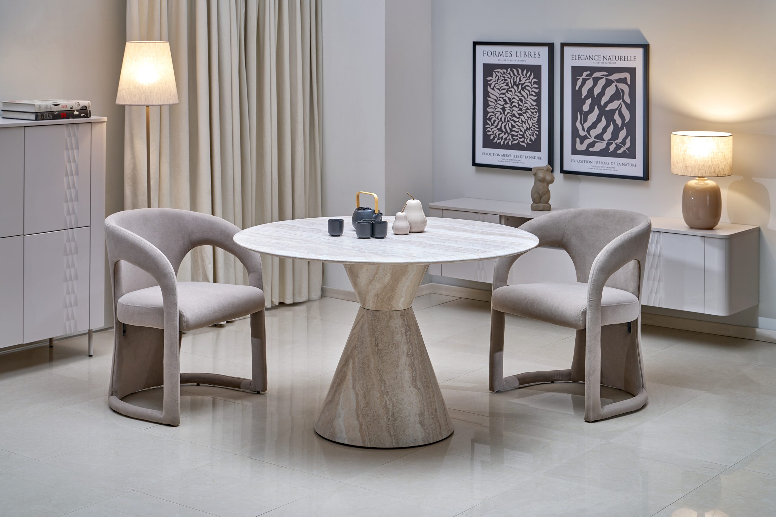 Dla pasjonatów designu przygotowaliśmy modele BENJAMIN oraz FALONE. To zestawienie materiałów, któredominuje w najnowszych projektach wnętrzarskich. BENJAMIN: Połączenie metalowej kaszmirowej nogi z beżowym ceramicznym blatem to synonim nowoczesnej elegancji. Stół jest odporny na zarysowania i plamy, co przy świątecznym zamieszaniu jest nieocenionym atutem. FALONE: Jasny trawertyn na blacie i kaszmirowa noga to absolutny top trend. Ten stół wprowadza do domu spokój i harmonię – dokładnie to, czego potrzebujemy podczas radosnego świętowania Wielkanocy.