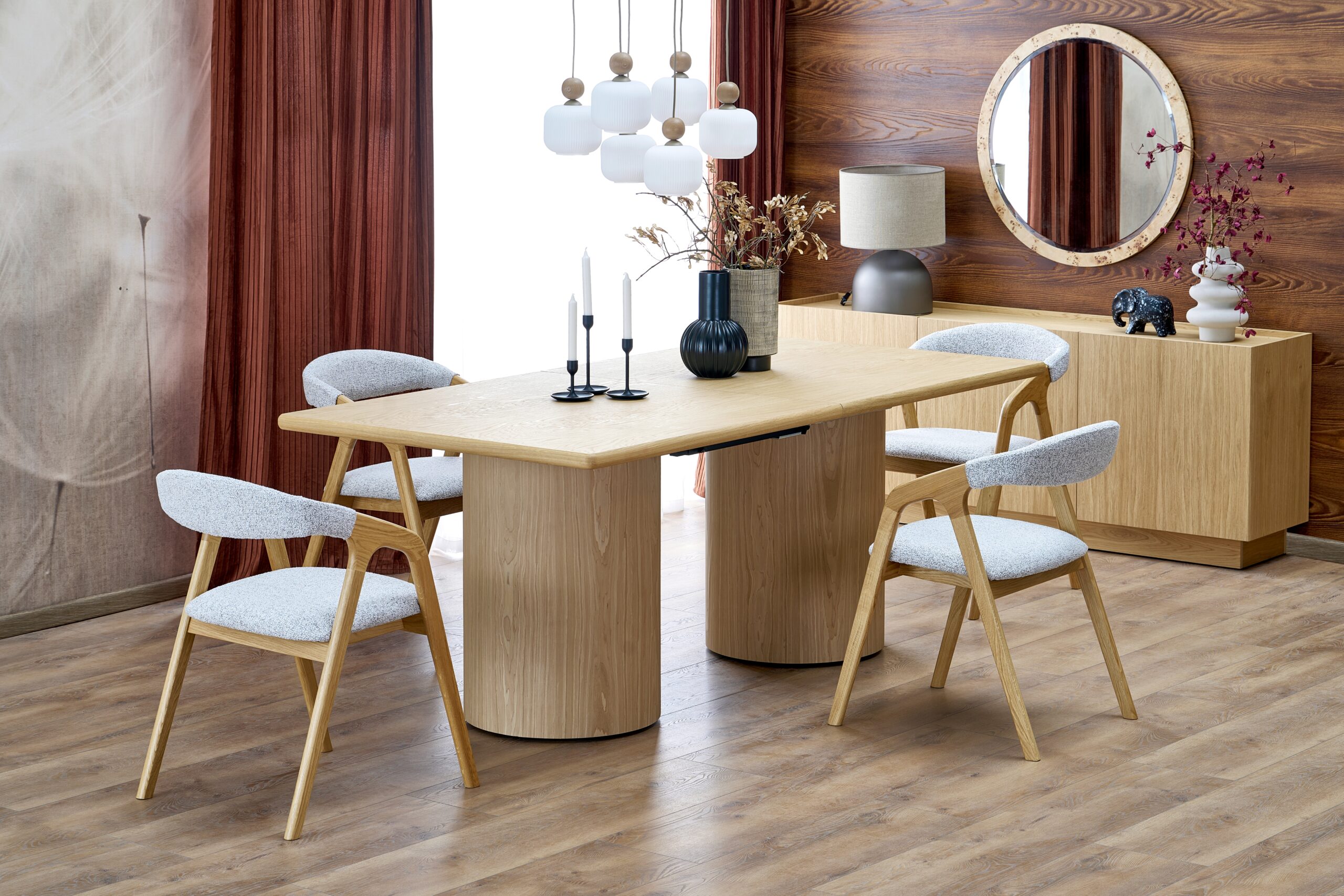 Modele EVEREST i JASON zapewnią komfort każdemu domownikowi. EVEREST: Dąb naturalny w matowym wykończeniu to idealne tło dla białego obrusu i zielonych gałązek bukszpanu. Dzięki funkcji rozkładania do bardzo dużych rozmiarów, bez trudu pomieścisz na nim wszystkie świąteczne półmiski.